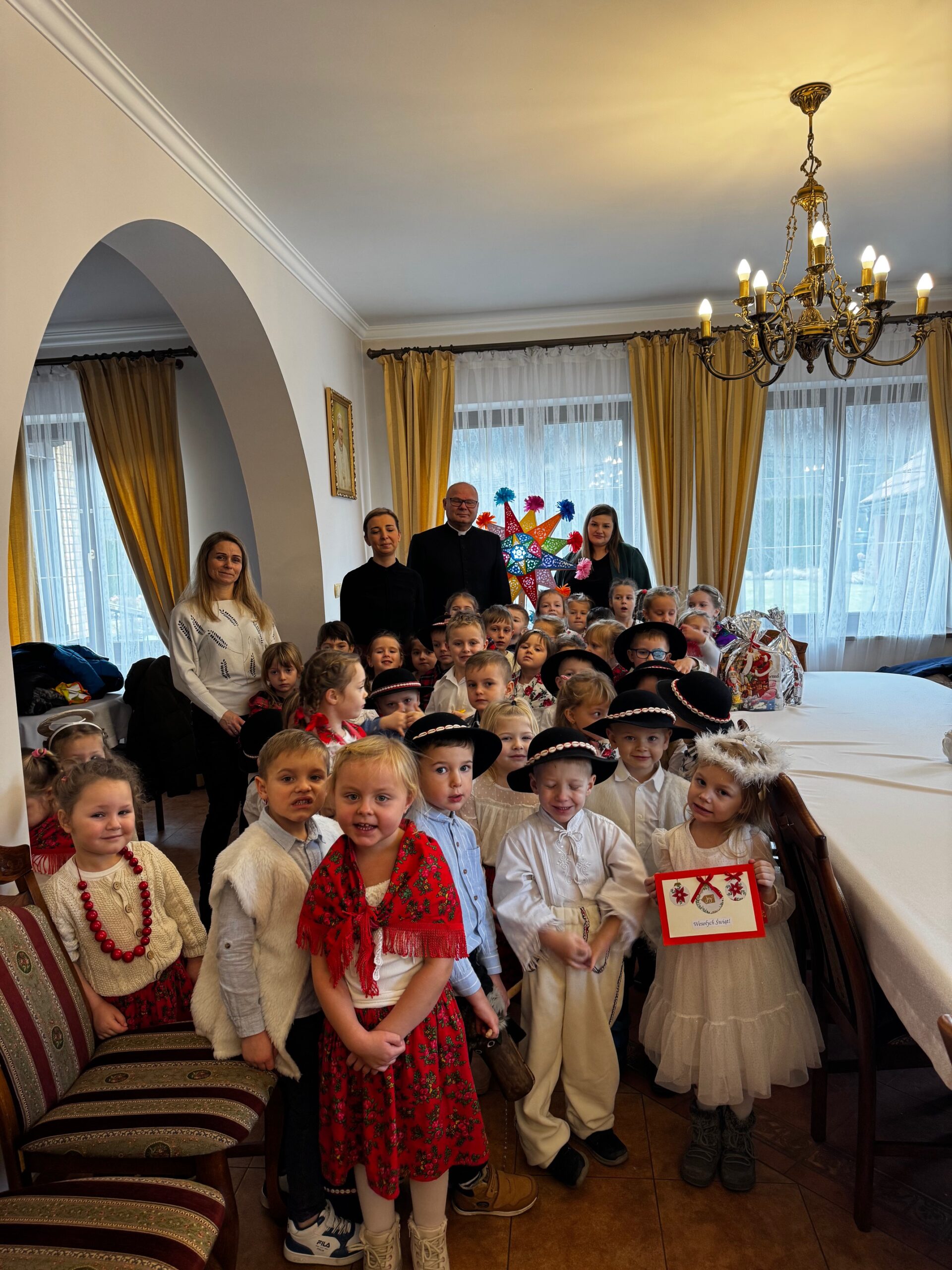 Przybycie kolędników wniosło ze sobą radość, ciepło i niezwykłą atmosferę zbliżających się Świąt Bożego Narodzenia. Śpiew kolęd, uśmiechy dzieci oraz ich szczera, pełna entuzjazmu obecność były prawdziwym darem, który na długo pozostanie w pamięci.